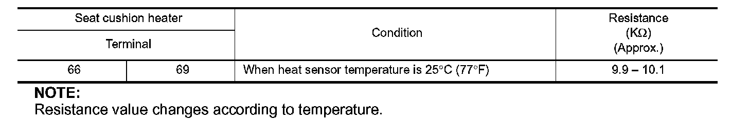 3. Check resistance between seat cushion heater terminals.