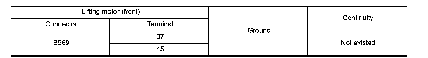 3. Check continuity between lifting motor (front) harness connector and ground.