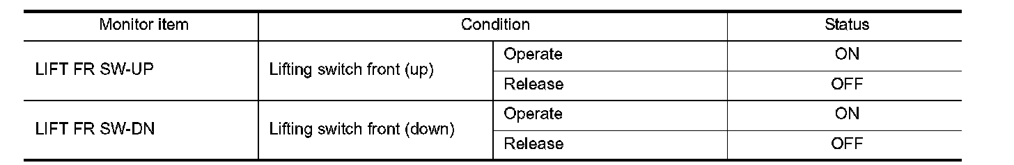 2. Select "LIFT FR SW-UP", "LIFT FR SW-DN" in the "Data monitor" mode using CONSULT-III.