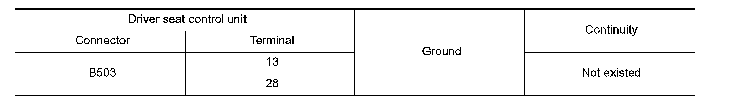 3. Check continuity between driver seat control unit harness connector and ground.