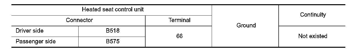 2. Check continuity between heated seat control unit harness connector and ground.
