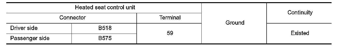 4. Check continuity between heated seat control unit harness connector and ground.