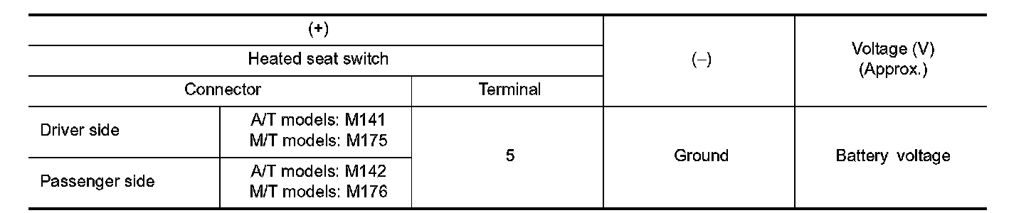 4. Check voltage between heated seat switch harness connector and ground.