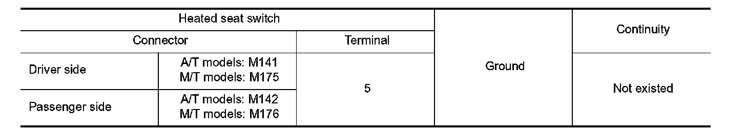 4. Check continuity between heated seat switch harness connector and ground.