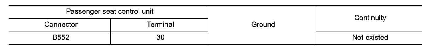 3. Check continuity between passenger seat control unit harness connector and ground.