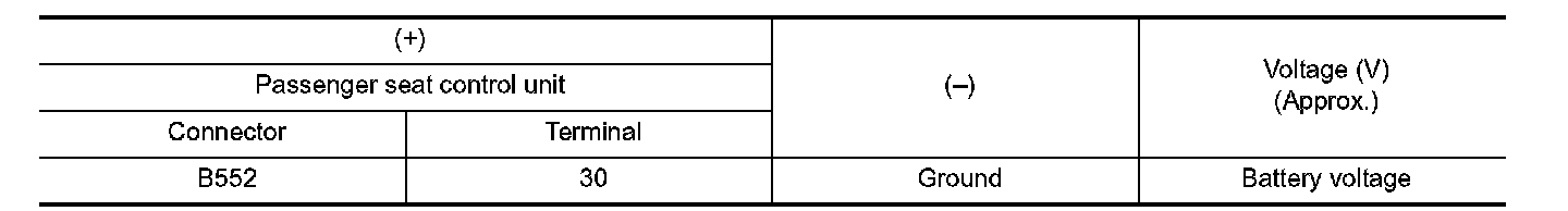 2. Check voltage between passenger seat control unit harness connector and ground.