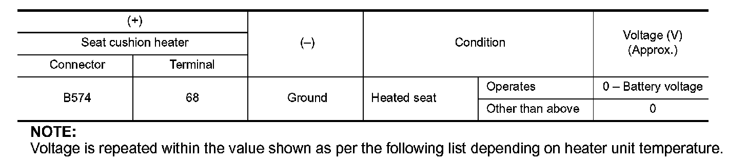 1.CHECK FRONT SEAT CUSHION HEATER INPUT SIGNAL