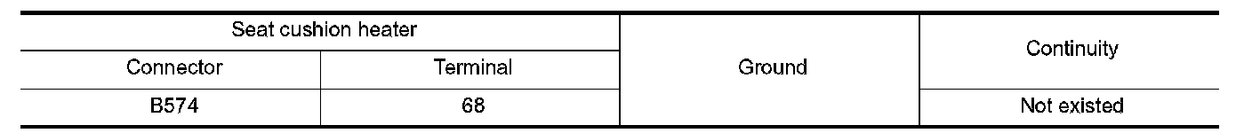 3. Check continuity between seat cushion heater harness connector and heated seat control unit harness connector.
