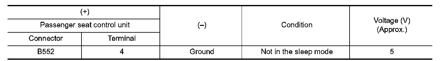 2. Check voltage between passenger seat control unit harness connector and ground.