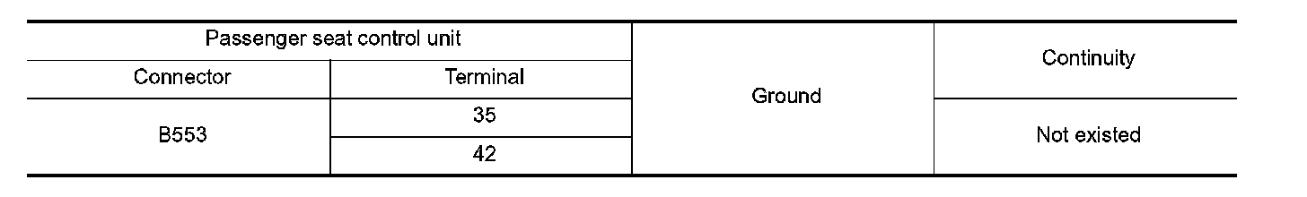3. Check continuity between passenger seat control unit harness connector and ground.