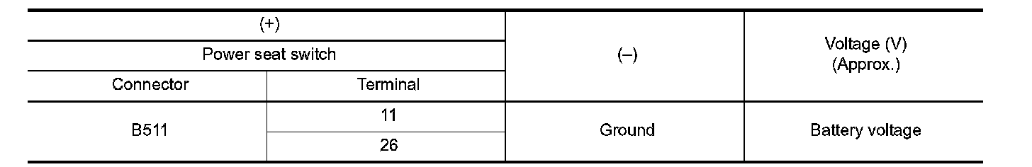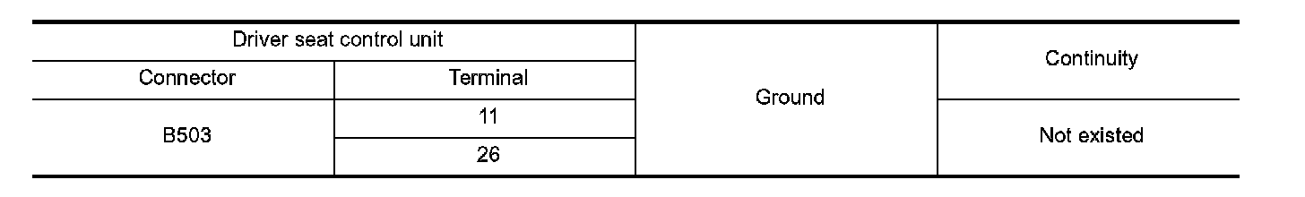 2. Check continuity between driver seat control unit harness connector and power seat switch harness connector.