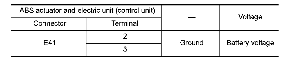 2. Check the voltage between ABS actuator and electric unit (control unit) harness connector and ground.