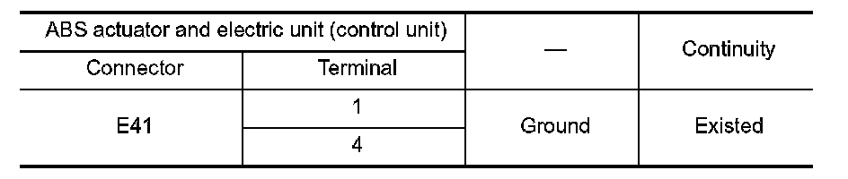Check the continuity between ABS actuator and electric unit (control unit) harness connector and ground.