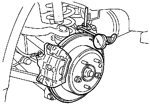 - If the thickness is less than wear thickness + 0.3 mm (0.012 in), replace the disc rotor.