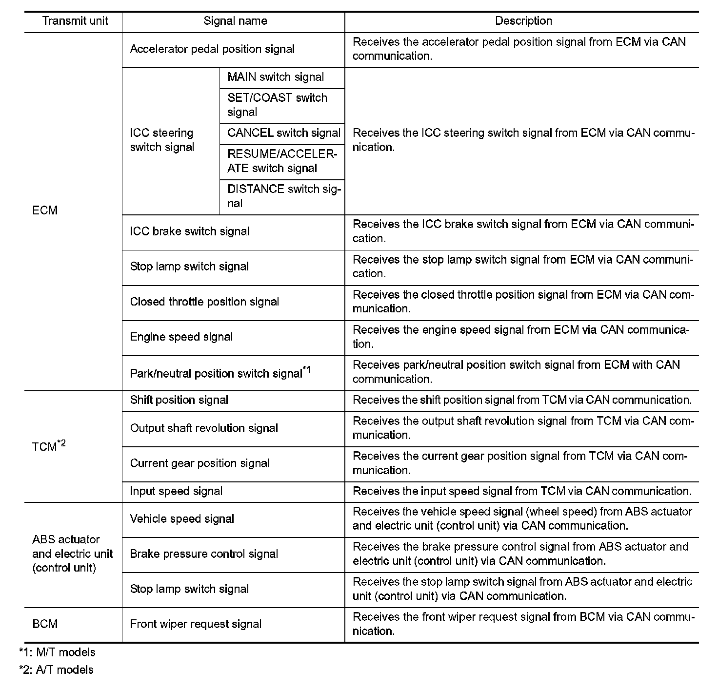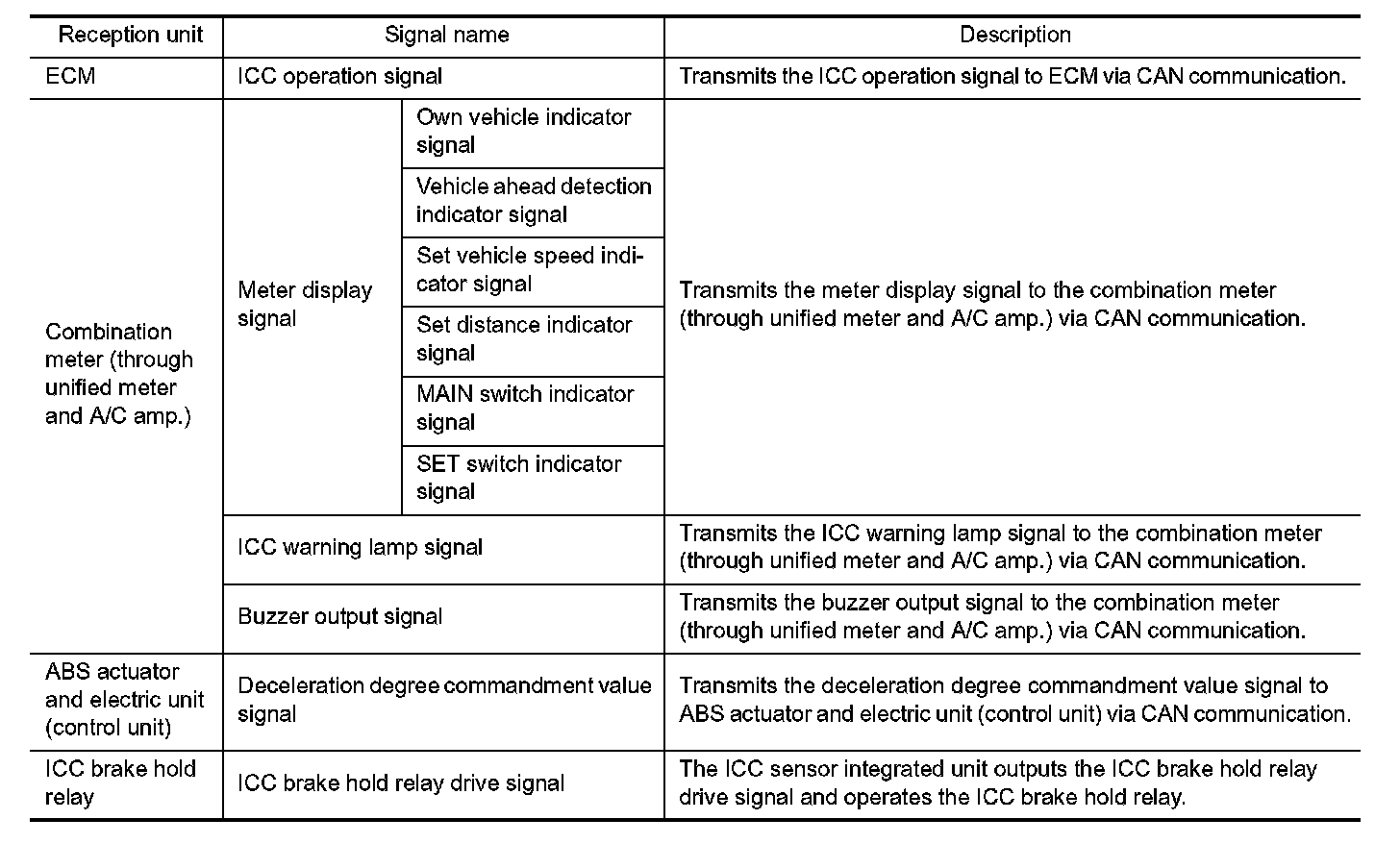 ICC SENSOR INTEGRATED UNIT INPUT/OUTPUT SIGNAL ITEM