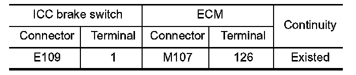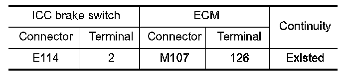 3. Check the continuity between ICC brake switch harness connector and ECM harness connector.