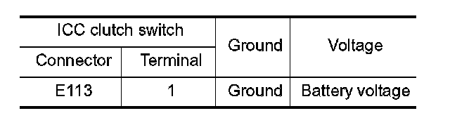 4. Check the voltage between ICC clutch switch harness connector and ground.