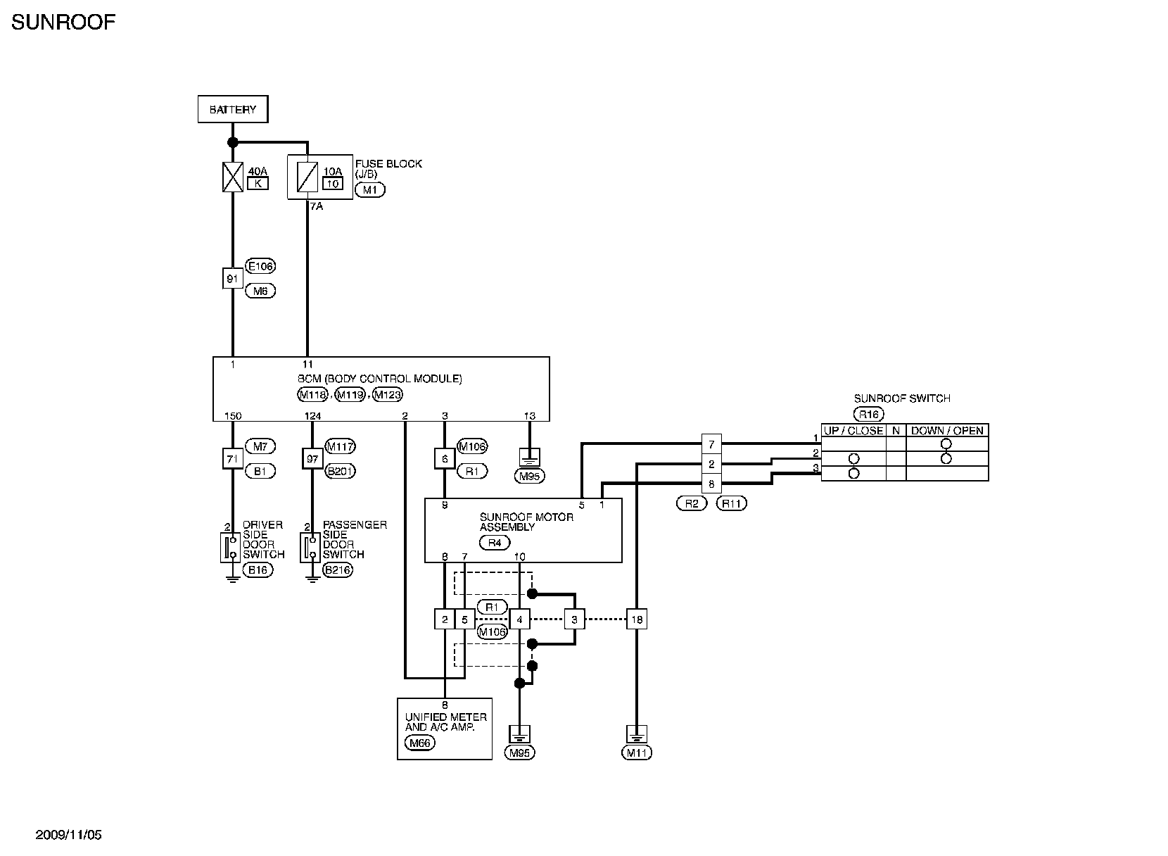 SUNROOF MOTOR ASSEMBLY : Wiring Diagram - SUNROOF CONTROL SYSTEM -