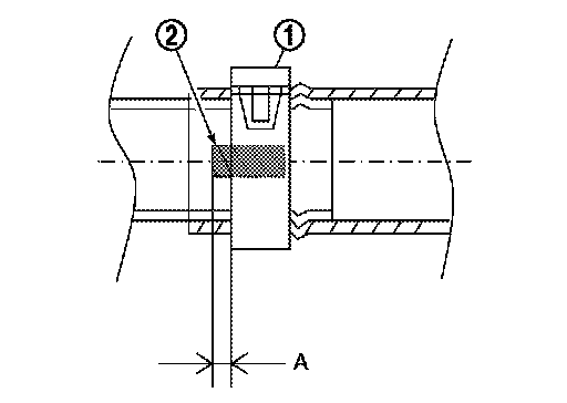 - To install hose clamps (1), check that the dimension (A) from the end of the paint mark (2) on the radiator hose to the hose clamp is within the reference value.