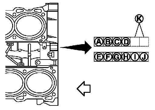 2. Correspond the measured dimension in "Cylinder block main bearing housing inner diameter" row of "MAIN BEARING SELECTION TABLE".