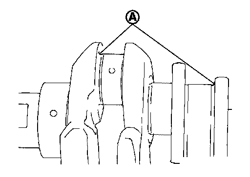 In grinding crankshaft main journal to use undersize bearings, keep the fillet R (A) [1.5 - 1.7 mm (0.059 - 0.067 in)].