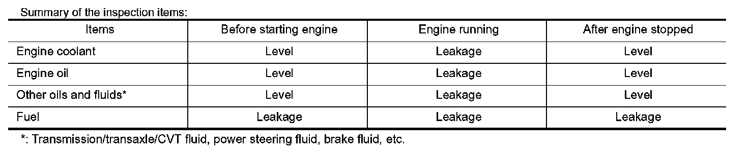The following are procedures for checking fluid leakage, lubricant leakage.