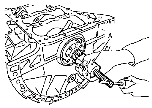 3. Remove pilot converter (A/T models) using the pilot bushing puller [SST: ST16610001 (J-23907)] (A) if necessary.