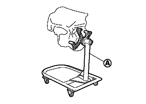The figure shows an example of widely use engine stand (A) that can hold mating surface of transmission with drive plate