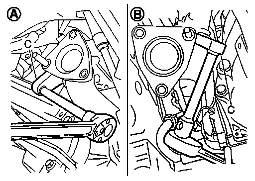9. Using the heated oxygen sensor wrench [SST: KV10114400 (J-38365)] (C), remove air fuel ratio sensor 1 (bank 1 and bank 2).