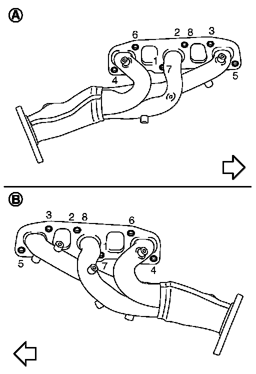 - Install exhaust manifold and tighten mounting bolts in numerical order as shown in the figure.