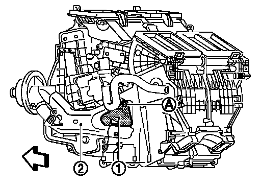 Remove mounting screw (A), and then remove heater duct (1) from heater & cooling unit assembly (2).