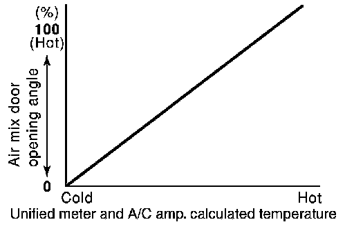 The air mix doors are automatically controlled so that in-vehicle temperature is maintained at a predetermined value by the temperature setting, ambient temperature, in-vehicle temperature and amount of sunload.