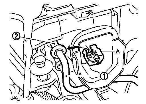 6. Remove mounting nut (A) from high-pressure flexible hose (1), and then remove high-pressure flexible hose.