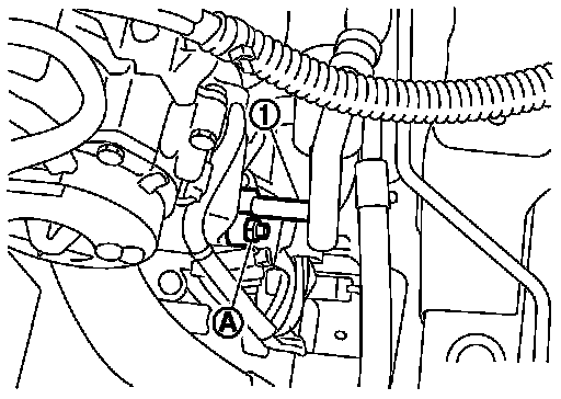 4. Remove mounting bolt (A) from high-pressure flexible hose bracket (1).