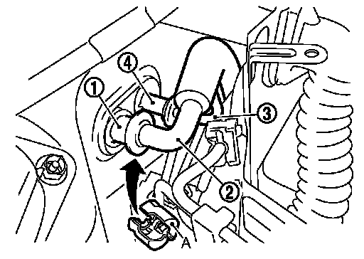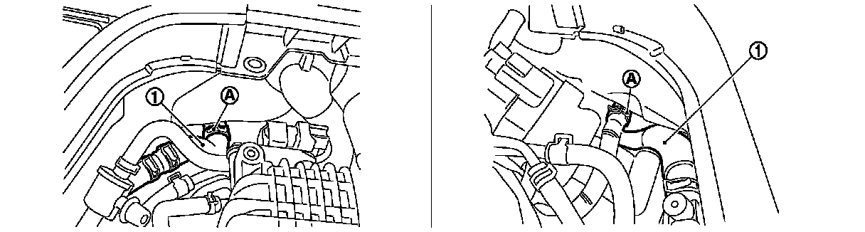 6. Remove clamp (A), and then disconnect heater hoses (1).
