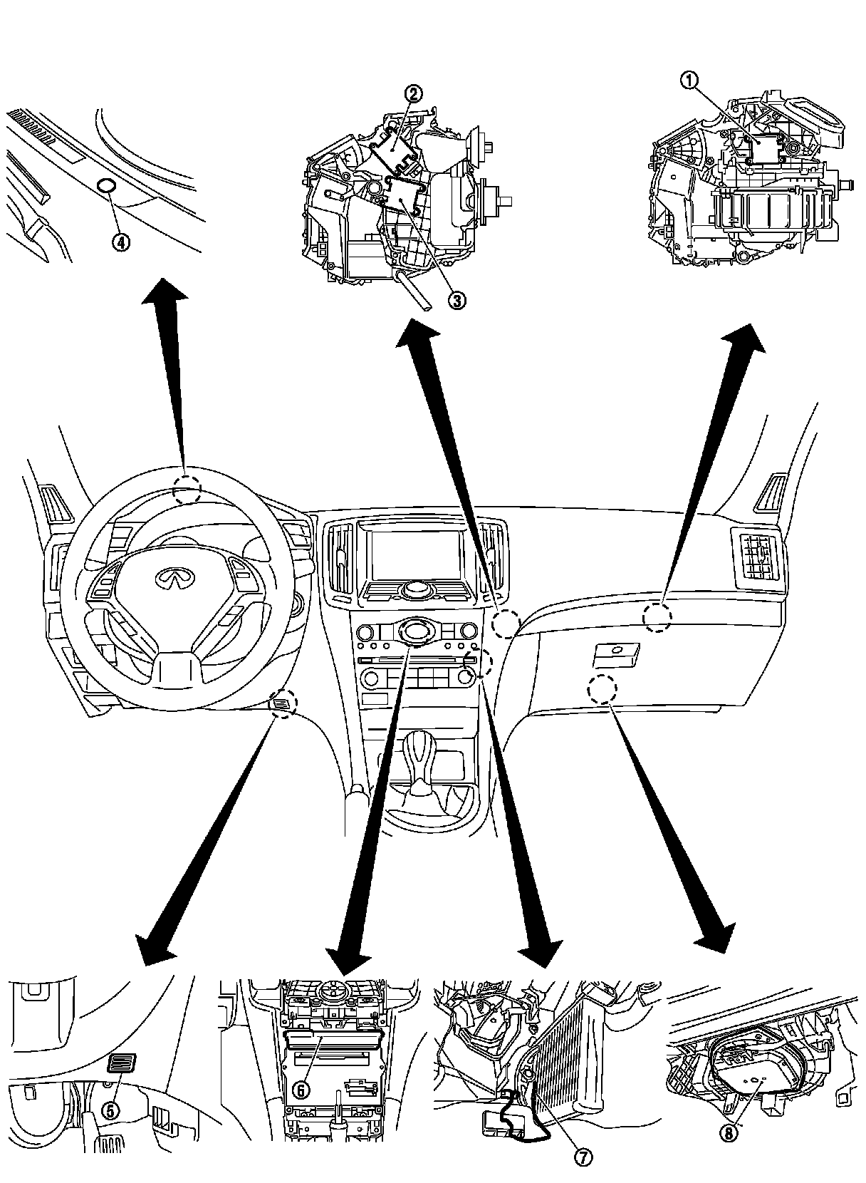 WITHOUT LEFT AND RIGHT VENTILATION TEMPERATURE SEPARATELY CONTROL SYSTEM : Component Part Location