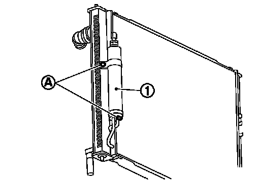 - Check that liquid tank bracket is securely installed at protrusion of condenser. (Check that liquid tank bracket does not move to a position below center of liquid tank.)