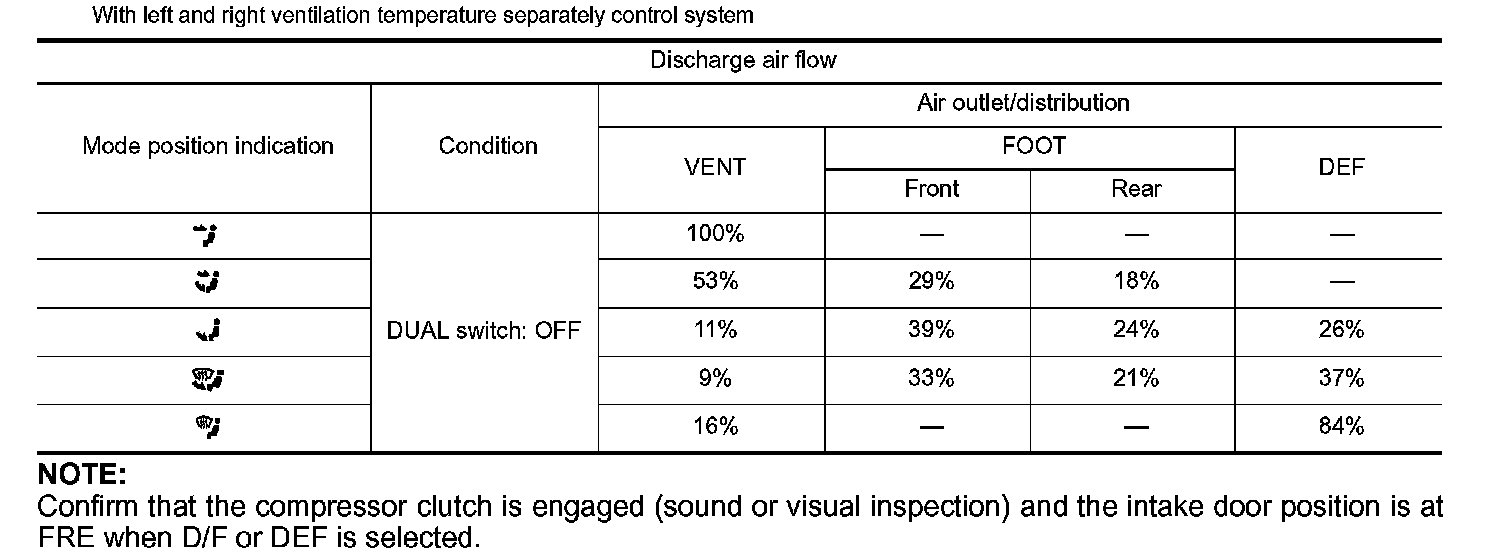 3. Confirm that discharge air comes out according to the air distribution table as follows: