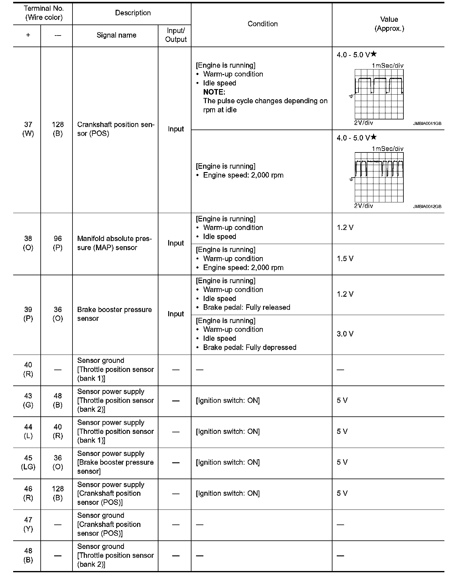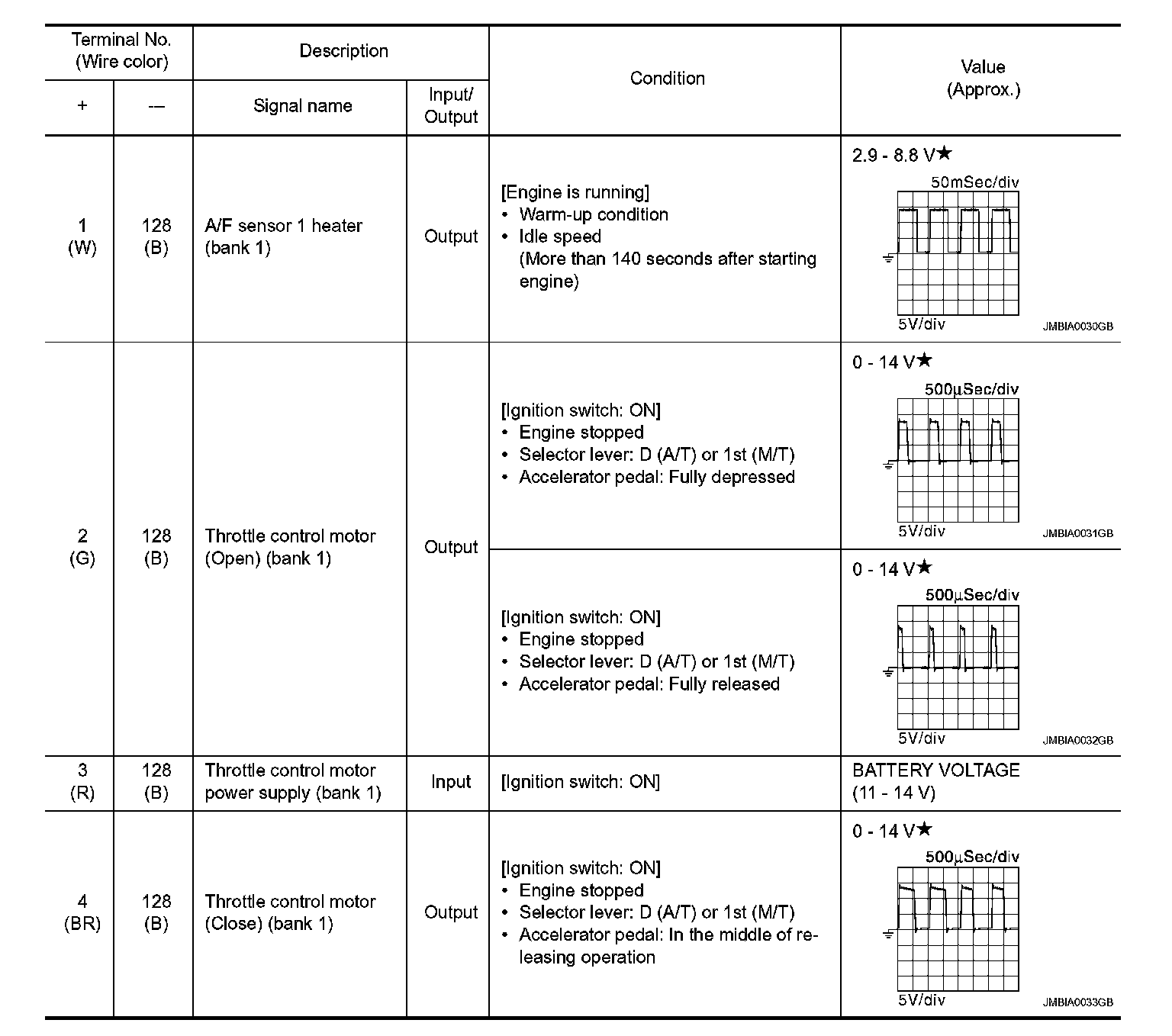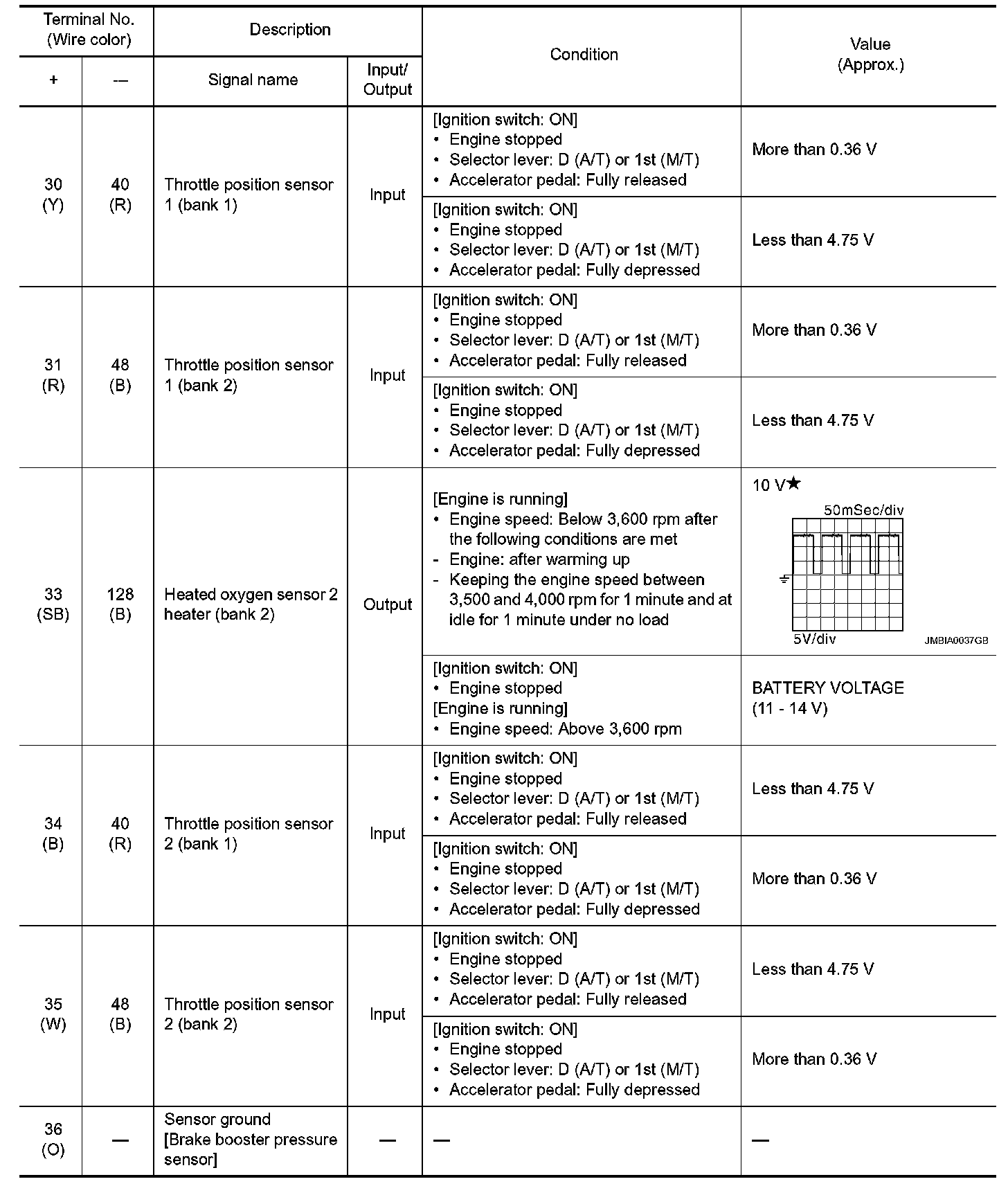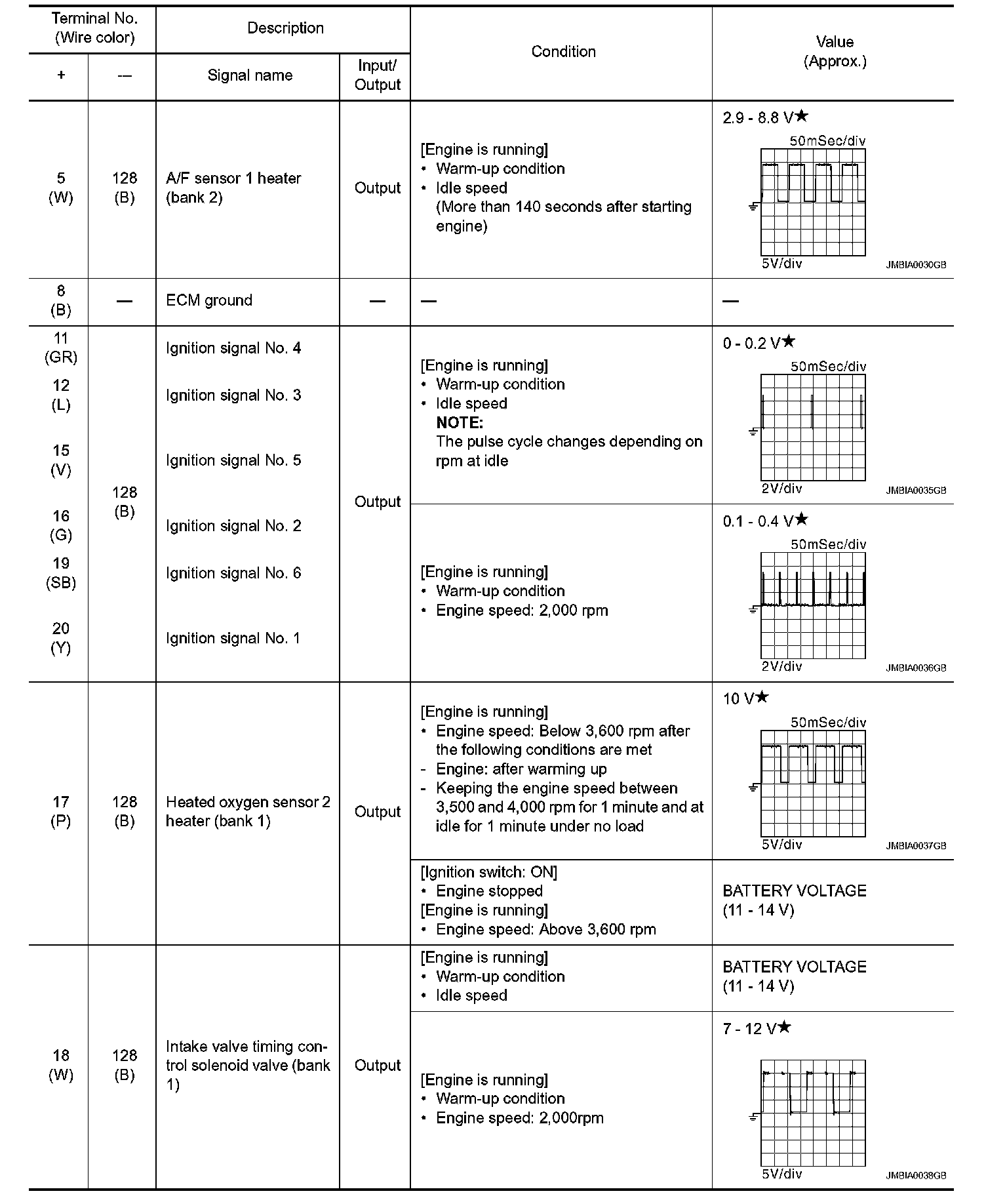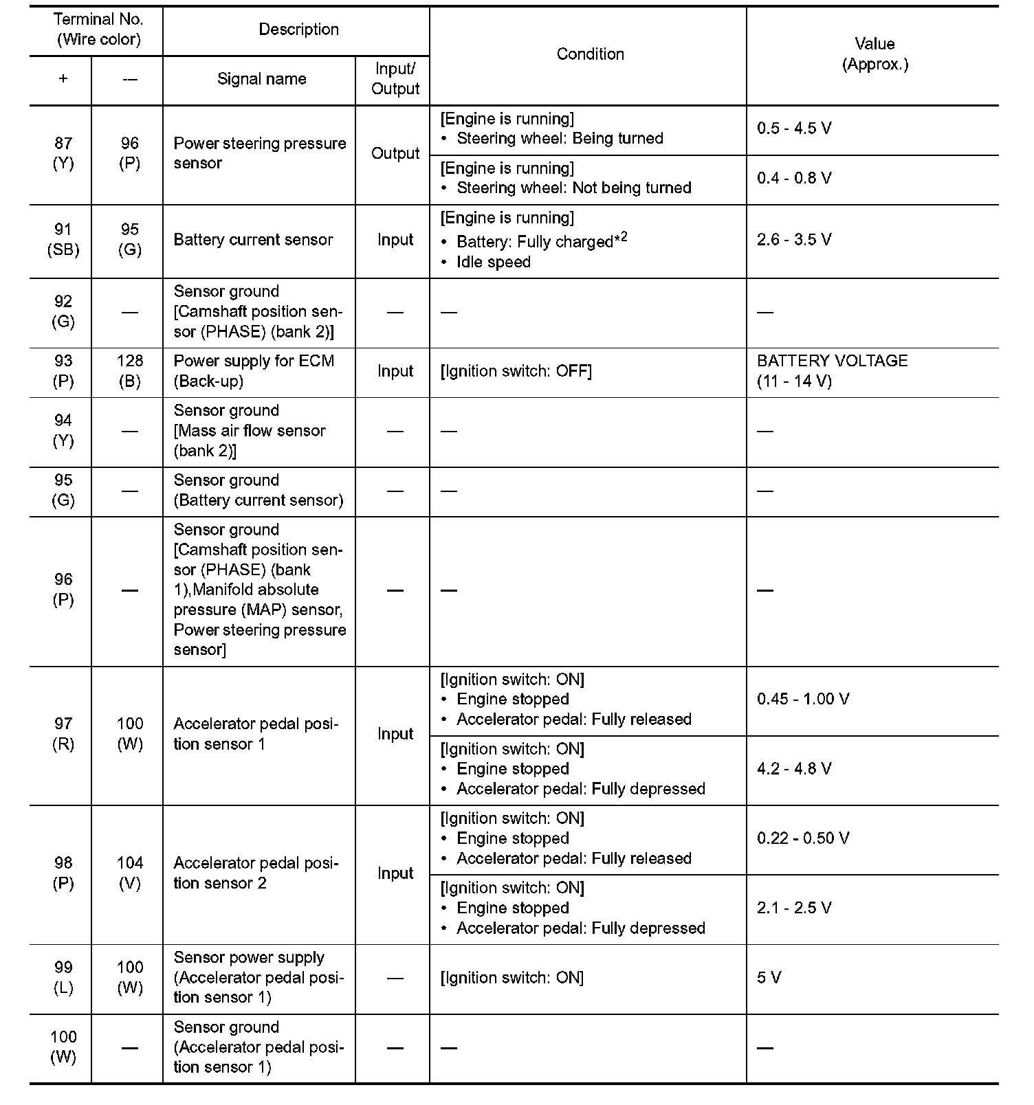 - Specification data are output/input values which are detected or supplied by the ECM at the connector.