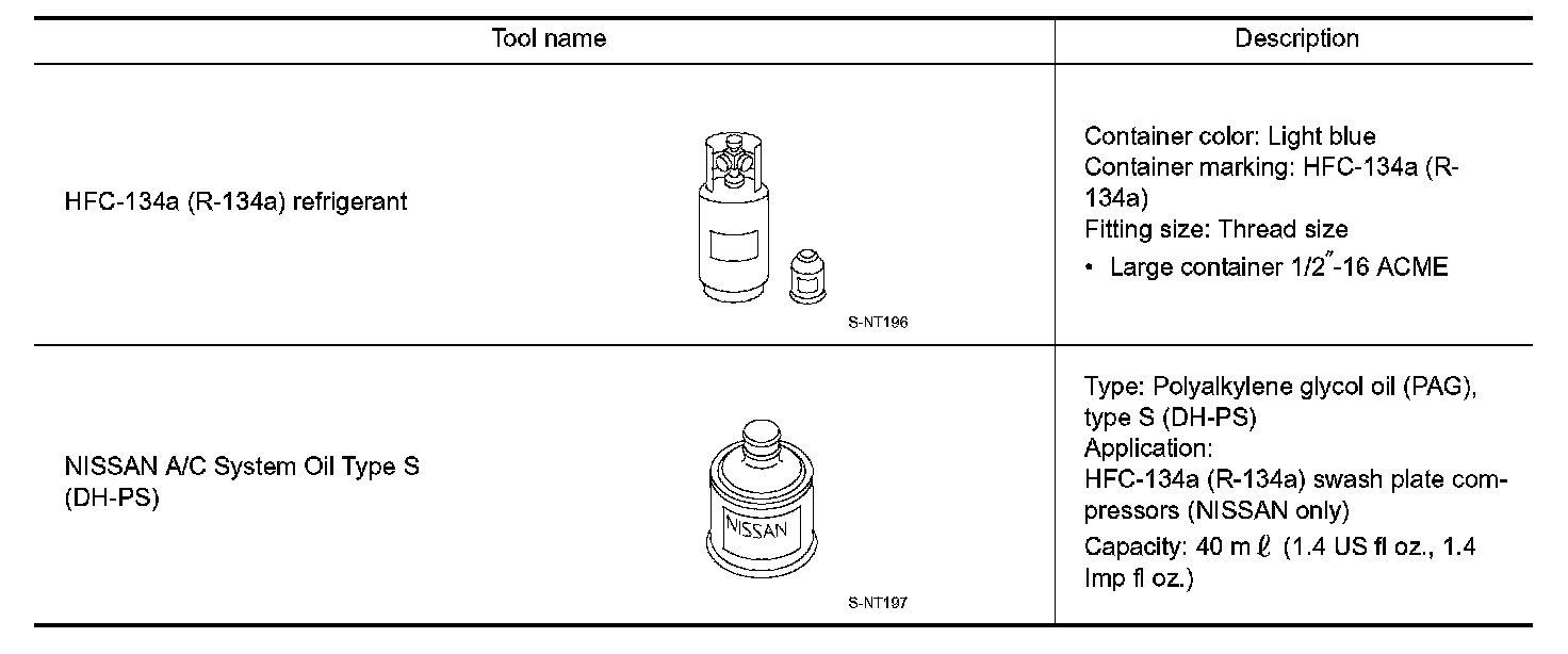 - Never mix HFC-134a (R-134a) refrigerant and/or its specified lubricant with CFC-12 (R-12) refrigerant and/ or its lubricant.