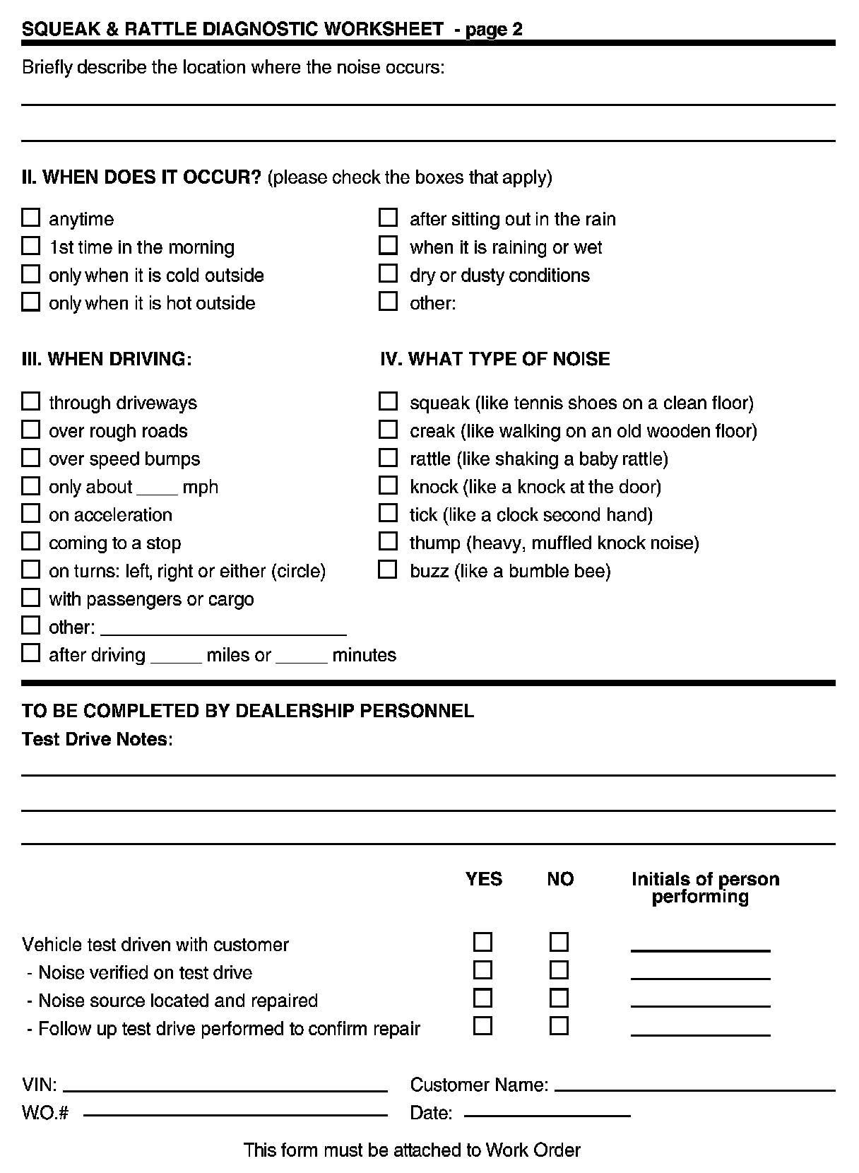 SQUEAK AND RATTLE TROUBLE DIAGNOSES
