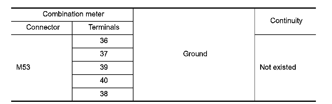 3. Check continuity between combination meter harness connector terminal and meter control switch harness connector terminal.