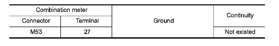 4. Check continuity between combination meter harness connector terminal and ground.