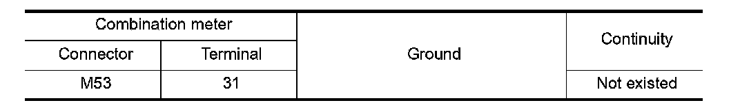 4. Check continuity between combination meter harness connector terminal and ground.