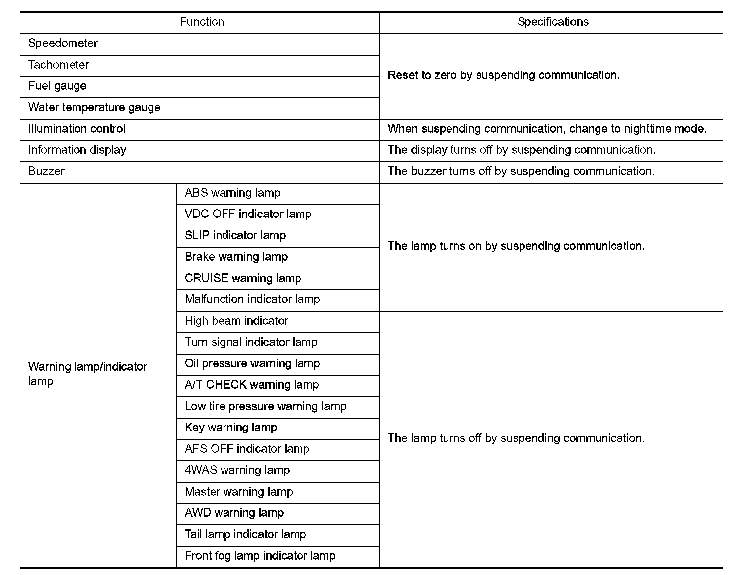 Combination meter performs fail-safe operation when unified meter and A/C amp. communication is malfunction.