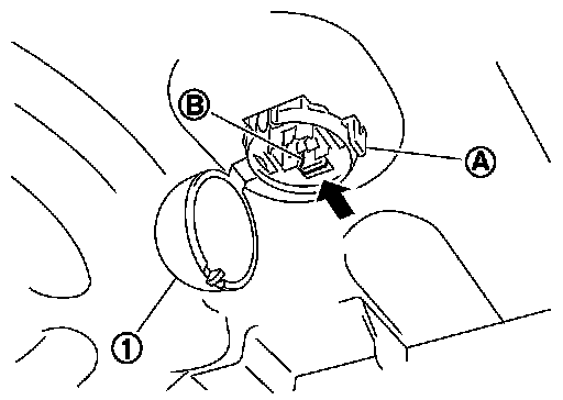 3. Pressing the pawl (B) to the arrow direction ( ). Pull out the trunk room lamp.