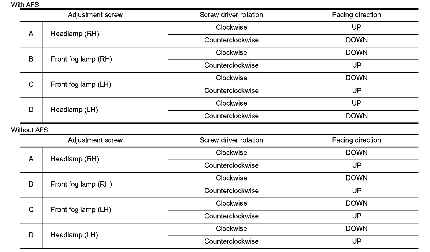 - Perform aiming if the vehicle front body has been repaired and/or the headlamp assembly has been replaced.