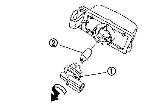 2. Turn the bulb socket (1) counterclockwise and unlock it.