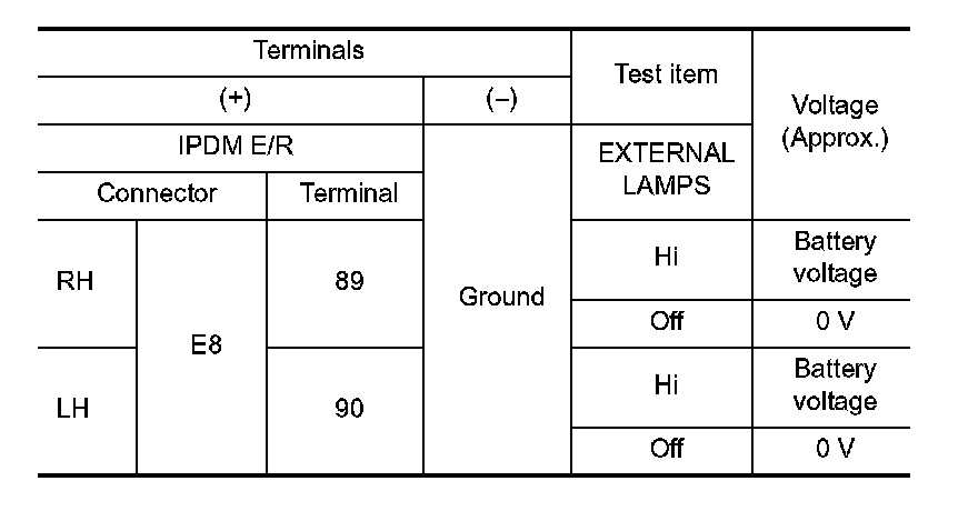 5. With operating the test items, check the voltage between the IPDM E/R harness connector and the ground.