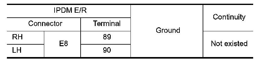 2. Check continuity between the IPDM E/R harness connector terminal and the ground.